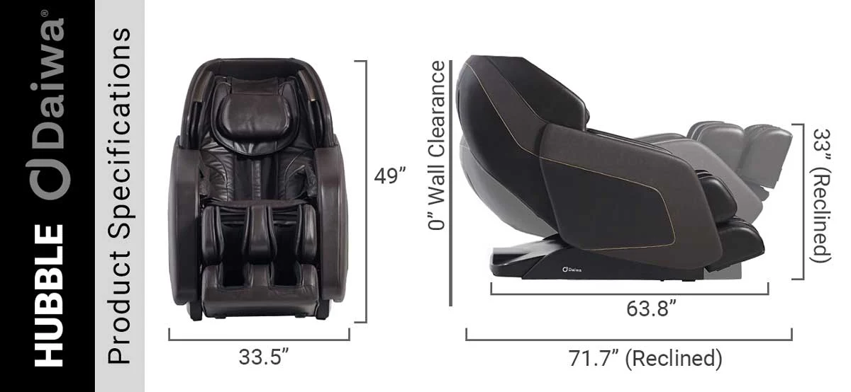 The Hubble's unique design allows it to take up as little room as possible while offering the biggest set of features available. The Wall-Hugger design uses a pivot-base system so that you can place it almost up against a wall and still enjoy the full recline position. The Zero Gravity recline feature positions the body in an optimal angle that relieves pressure on the joints and gives a peaceful. weightless sensation.
