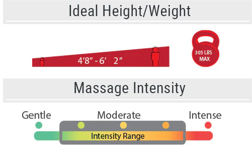 Heating elements built into the back and legs of the chair. Add heat to your massage session to loosen muscles to increase the benefits.