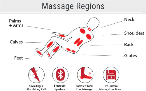 Zero gravity positioning elevates your knees above your heart. which allows the spine to decompress. provides a sense of weightlessness. and maximizes the effects of the massage rollers..