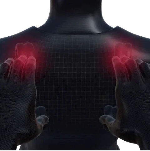 Heat therapy is applied to the lower lumbar and leg regions. targeting the lower back area to alleviate tension and promote relaxation in the underlying muscles and joints.