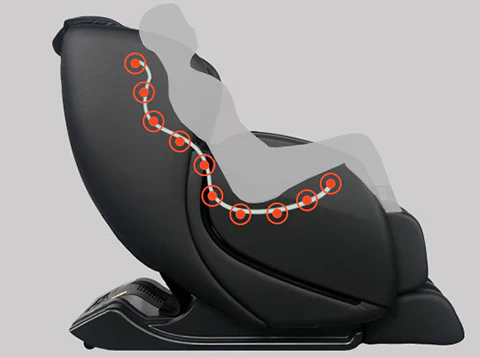 The L-Shaped track allows the massage robot to travel from the top of your back. down your spine. and all the way to your glutes. for a more complete full body massage.