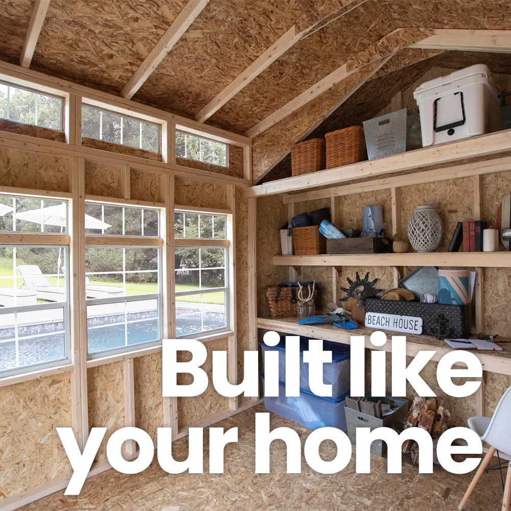 Durable. long-lasting wood framing features premium 2" x 4" lumber for maximum protection against strong winds.