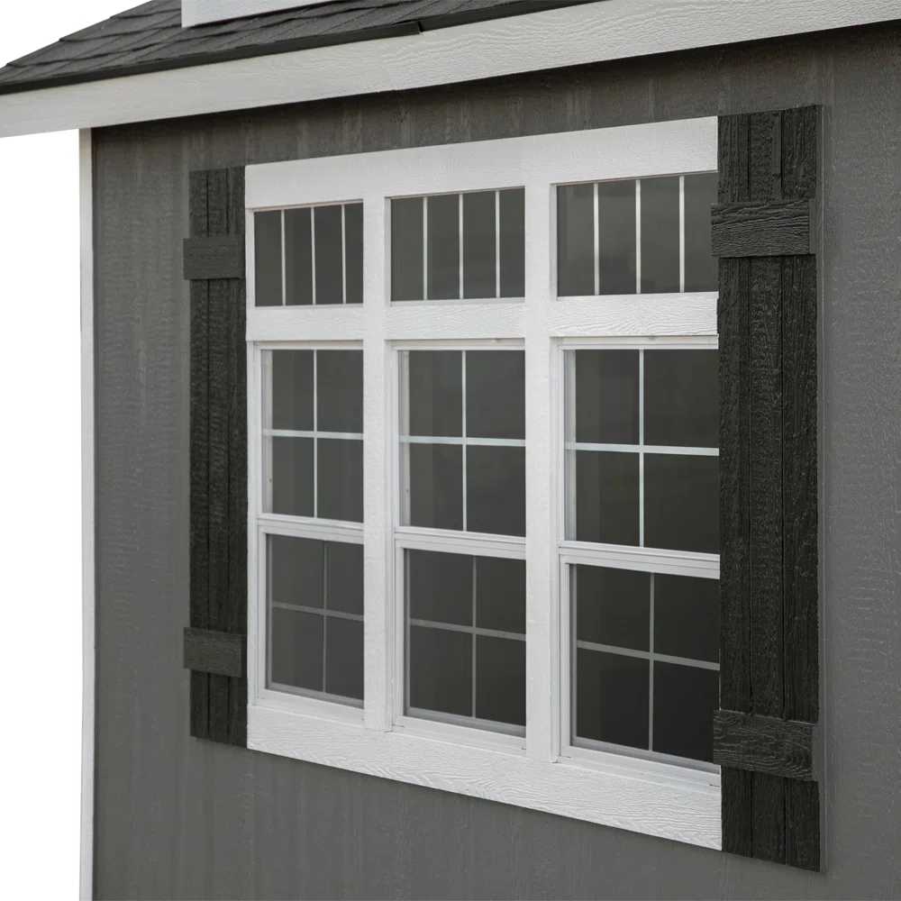 Three operable windows and three upper transom windows let plenty of light inside the shed and add a stylish touch to its exterior.
